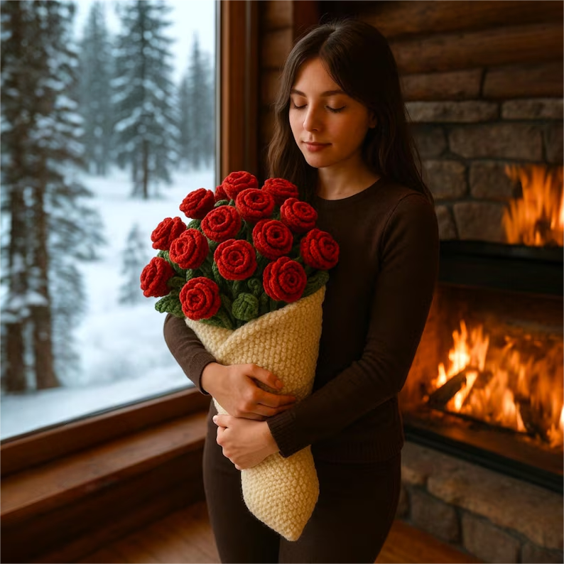 Crocheted Eucalyptus Leaf Sunflower Bouquet