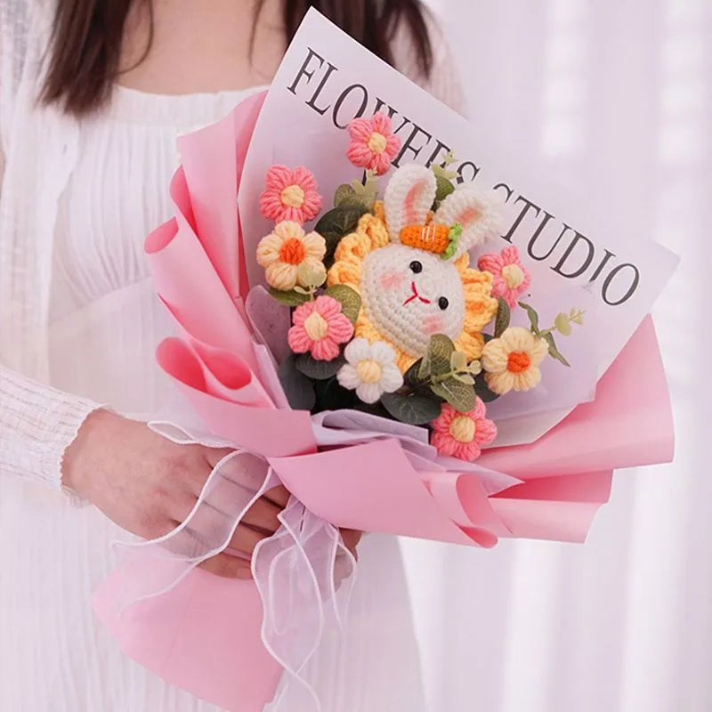 Hand Crocheted Sunflower Bunny Bouquet