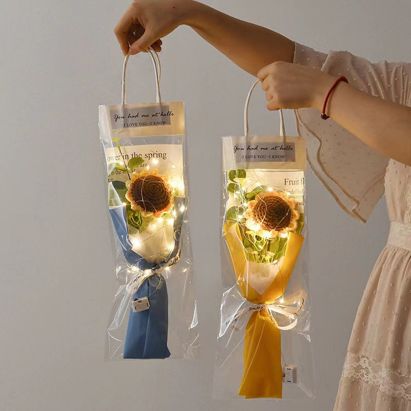 Pure handmade crochet hook flower, in the machining of the times, the traditional handicraft is on the verge of extinction, do not and machine embroidery compared, it has a collection of boutique. Artificial flower bouquets can insert the vase and placed in every corner of the room as decorations, then adding warm colors for the room.