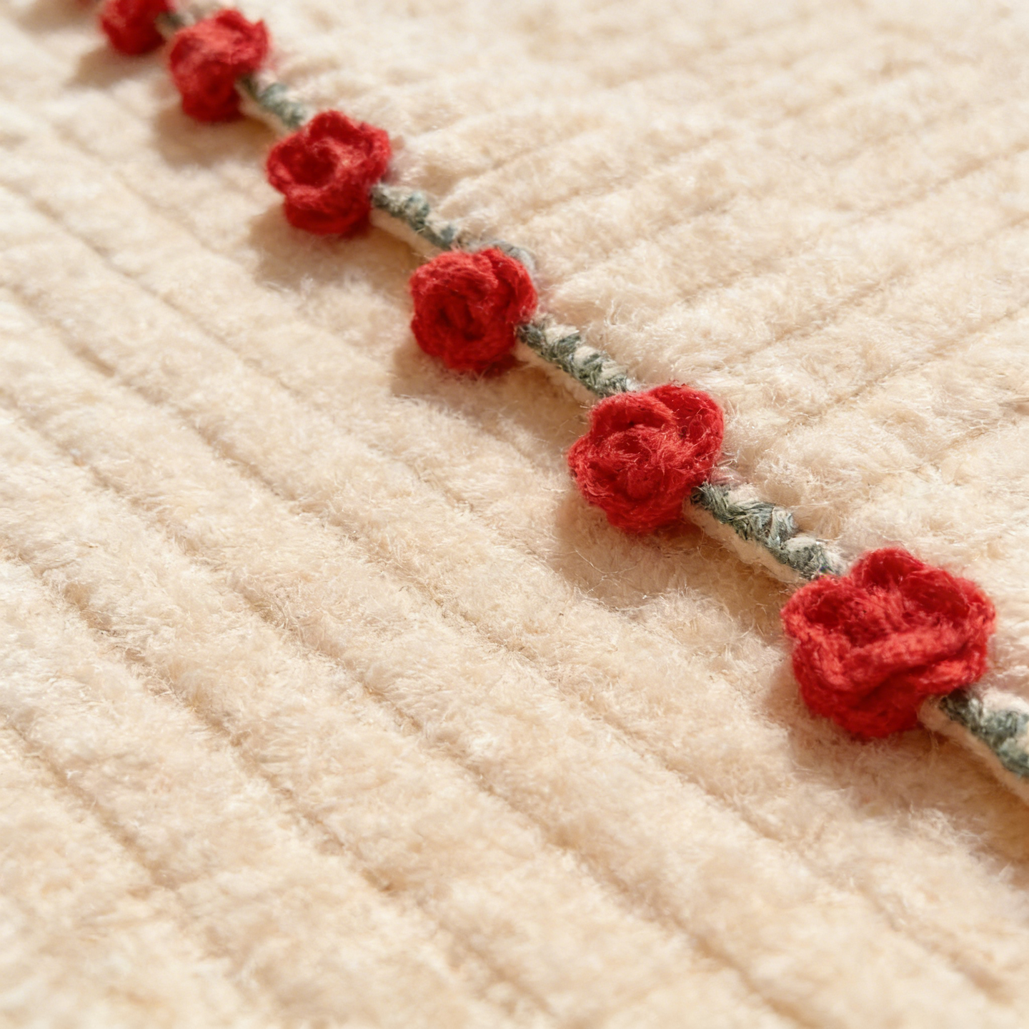 Craftsmanship: Full circle triangular stitch + full circle handmade roses