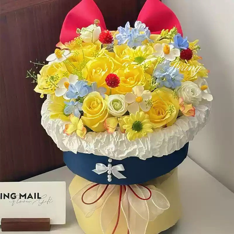 Romantic Snow White color matching rose bouquet finished soap flower